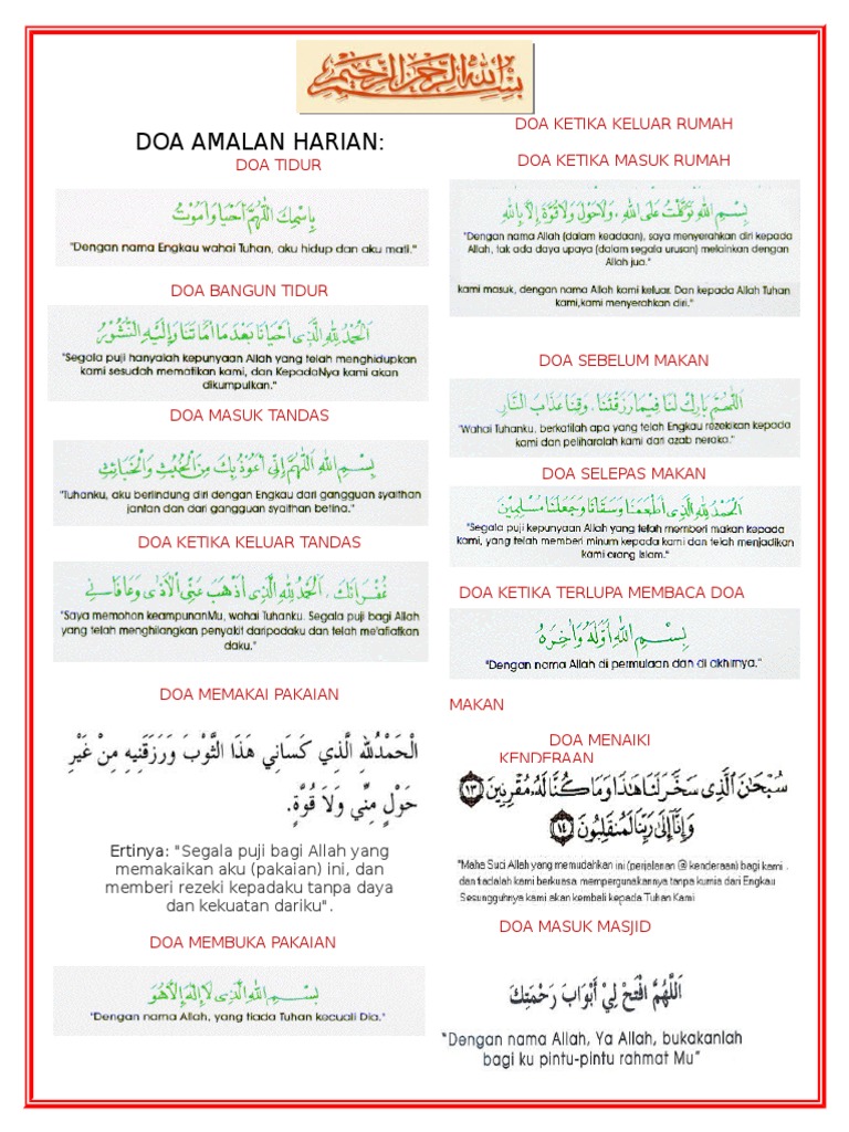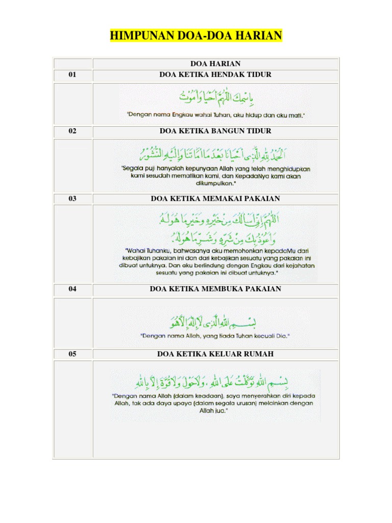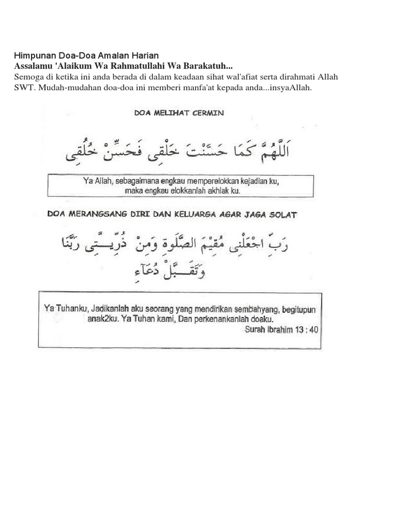Panduan ini disediakan secara lengkap dan tersusun untuk memudahkan anda mencari doa yang diperlukan dan beramal dengan doa tersebut. Telecharger Kumpulan Doa Sehari Hari Islam Pdf. The Doa of one of the Companion Abu Darda radiALLAH huanh is considered to be the one of the amal for self-protection recommended by.