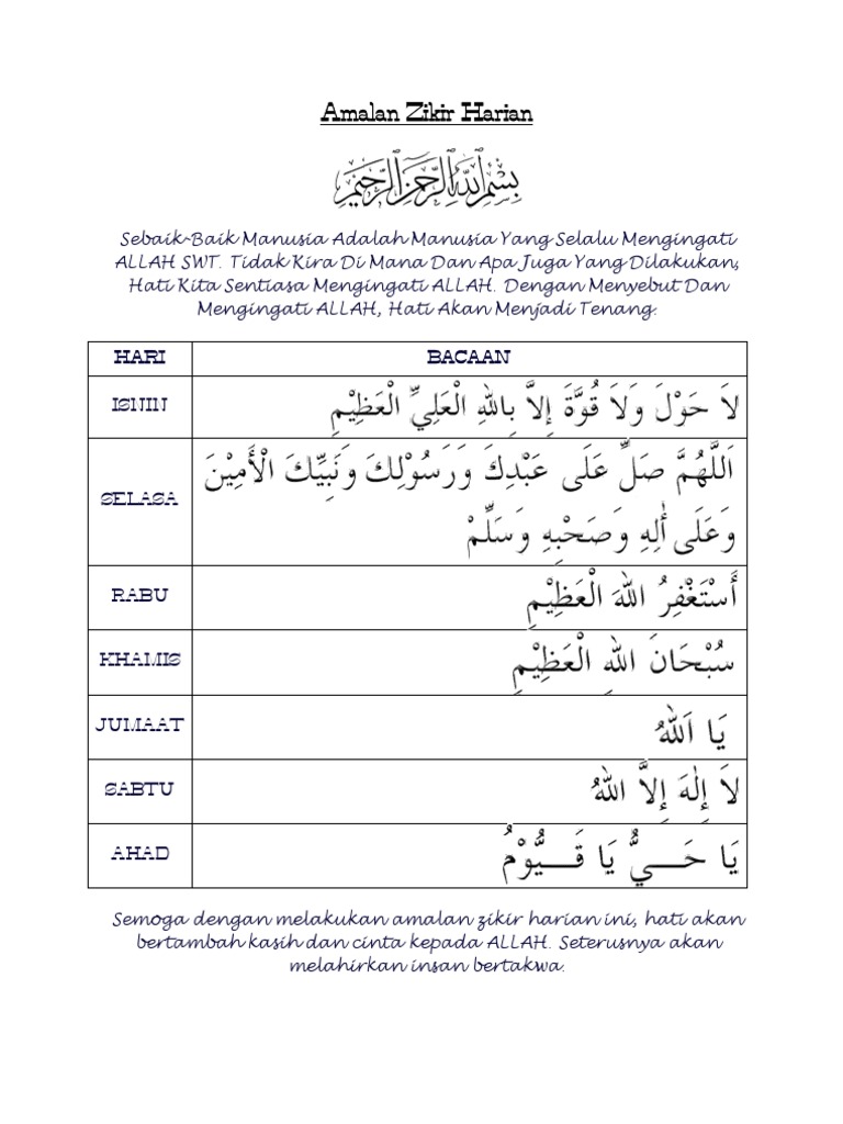 Diharap aplikasi ini dapat membantu meningkatkan amalan harian. 709 Download Online Terus Bersama Allah Dan Rasul Nya Doa Zikir Dan Amalan Harian 24 Jam PDFePub Mobi eBooks by Click Download or Read Online button. Add to my workbooks 0 Download file pdf Embed in my website or blog Add to Google Classroom.